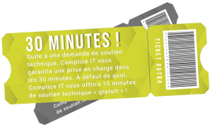 Chez Complice IT, la gestion des attentes et la rapidité de prise en charge sont prioritaires. Il est un devoir pour nous de toujours être à disposition rapidement pour vous, que vous sentiez que vous bénéficiez d’un réel support. C’est pourquoi nous garantissons maintenant une prise en charge des demandes de support en 30 minutes ou moins ! Nous sommes à l’écoute de vos besoins et nous ferons également toujours preuve d’initiative pour vous proposer des solutions justes, efficaces et novatrices ! Constamment en gardant le même objectif en tête; optimiser votre hygiène technologique afin que vous puissiez maximiser vos ressources sur ce qui compte vraiment pour votre entreprise tout en étant en pleine confiance de vos systèmes !