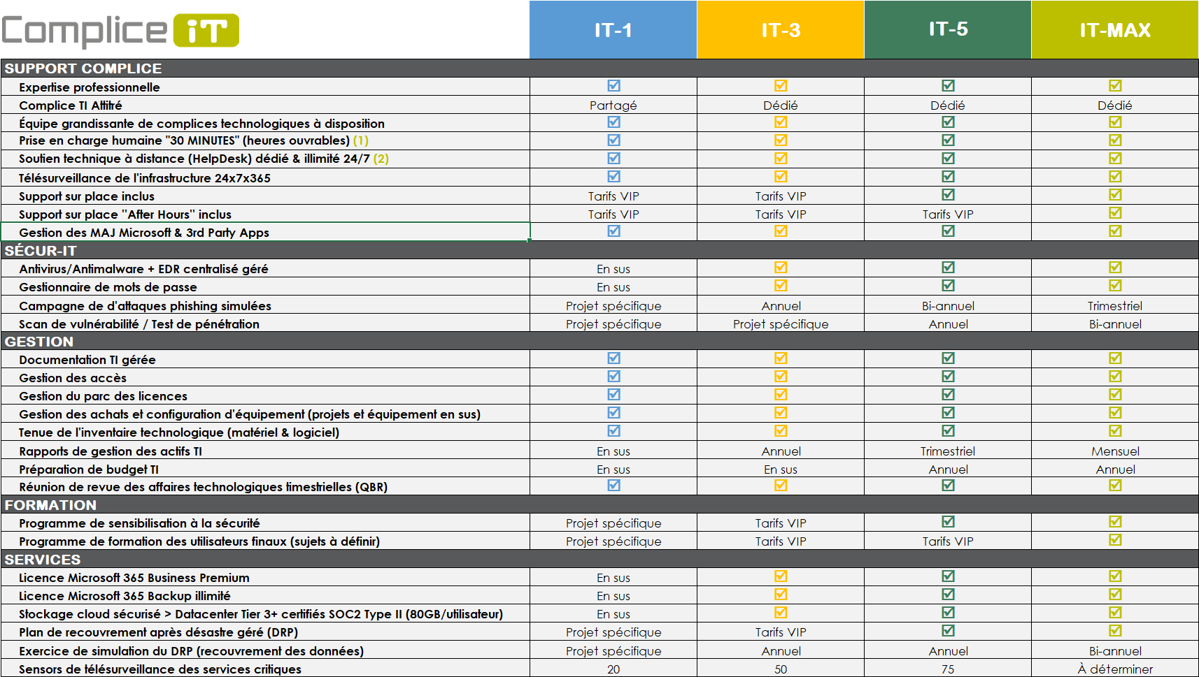 Tous les forfaits sont entièrement modulables selon VOS besoins et VOTRE réalité ! Parlez à un expert complice pour en savoir plus !